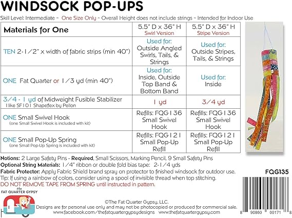 Amazon Com Windsock Pop Up Sewing Pattern Kit By Fat Quarter Gypsy Arts Crafts Sewing